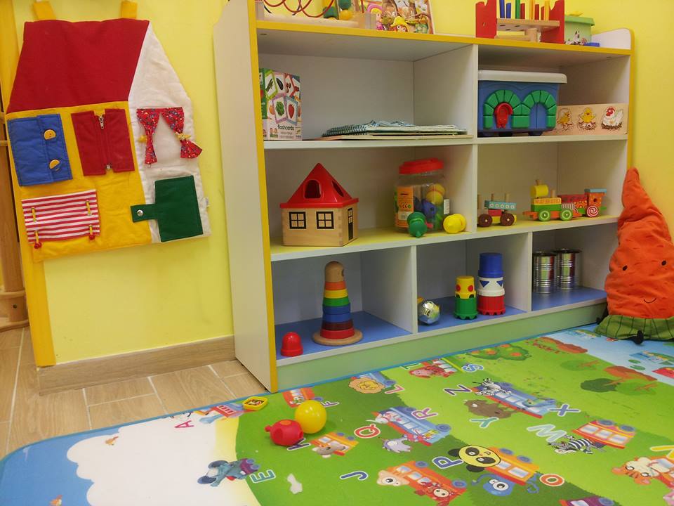 -    Angolo psicomotorio, strutturato per il contenimento fisico e per la sperimentazione corporea. Può essere praticata la psicomotricità avendo a disposizione uno spazio attrezzato con materiali idonei, quali tappetini, cuscini, palloni, cerchi, percorsi motori, birilli, palle ritmiche, percorsi tattili. E’ molto importante uno sviluppo armonico tra corpo e psiche; il bambino deve essere accompagnato alla scoperta del proprio corpo, dei movimenti che è in grado di fare, della coordinazione e della sicurezza motoria.